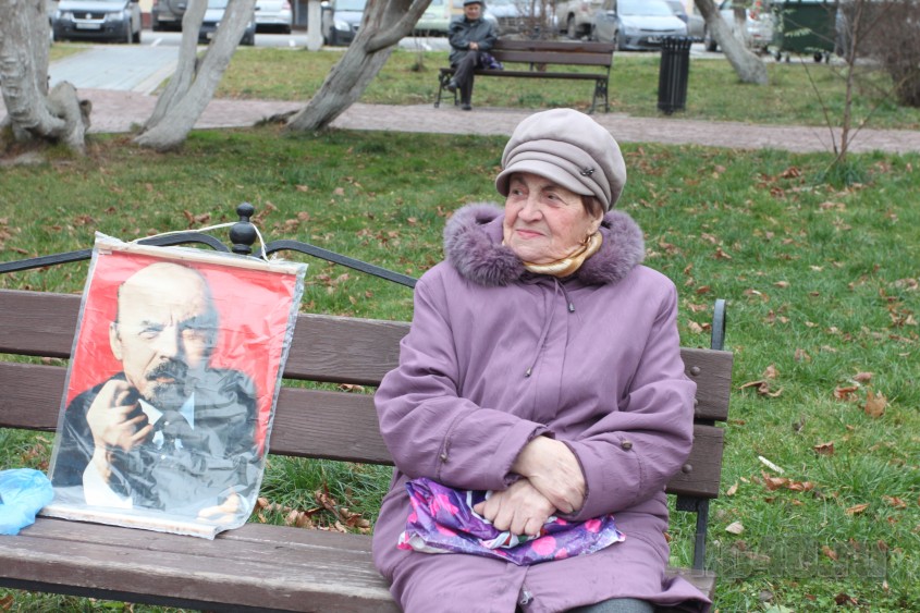 Колонна с каждым шагом пополнялась новыми участниками. Многим пожилым людям тяжело было идти от площади Победы, поэтому они ждали демонстрантов у памятника Ленину.