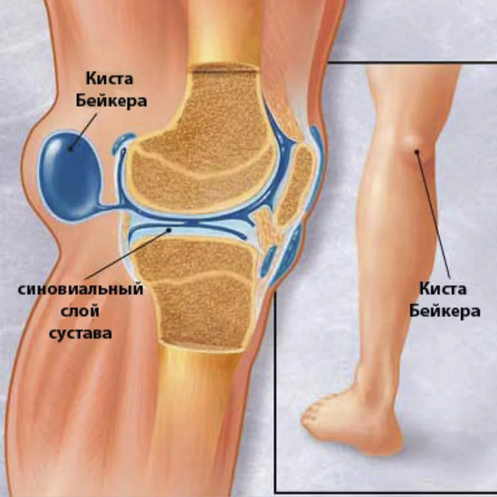 Киста Бейкера - это доброкачественное образование в области подколенной ямки, которую в народе называют «шишка под коленом».