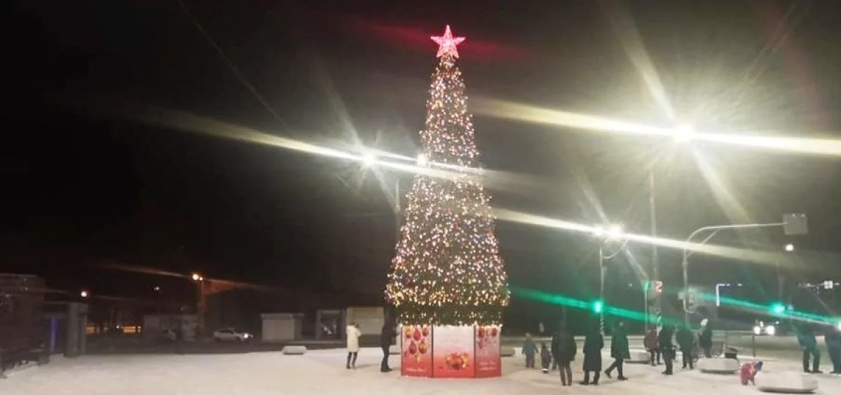На днях в Малоярославце на площади Жукова установили елку с большой красной звездой наверху. Часть шаров и игрушек проворные граждане уже растащили.