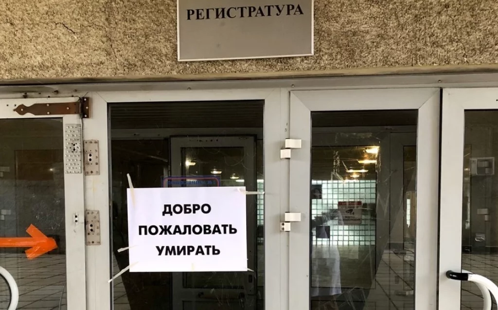 «Добро пожаловать умирать»: плакат на дверях поликлиники посчитали вандализмом