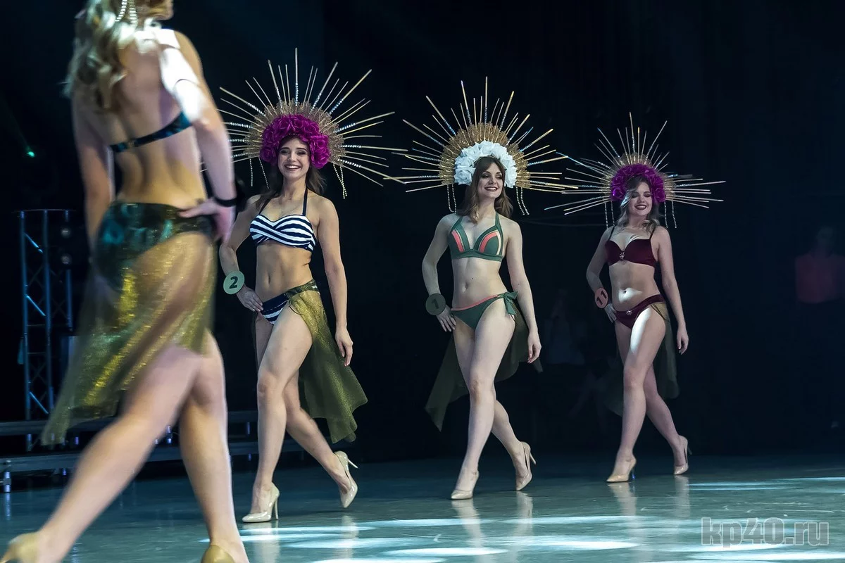 «Визитки» на этот раз шли не единым блоком, а в перерывах между дефиле. И после первой части творческого конкурса было решено подать «главное блюдо» - выход в купальниках. После вызывающе пуританского конкурса в прошлом году это казалось настоящим прорывом. Головы девушек при этом венчали странные головные уборы, вероятно, символизирующие лучи весеннего солнца. Из зала же они скорее напоминали статуи свободы, лишившиеся разом хитонов и факелов. Но главное, что всеми любимое дефиле в купальниках вновь вернулось на сцену.