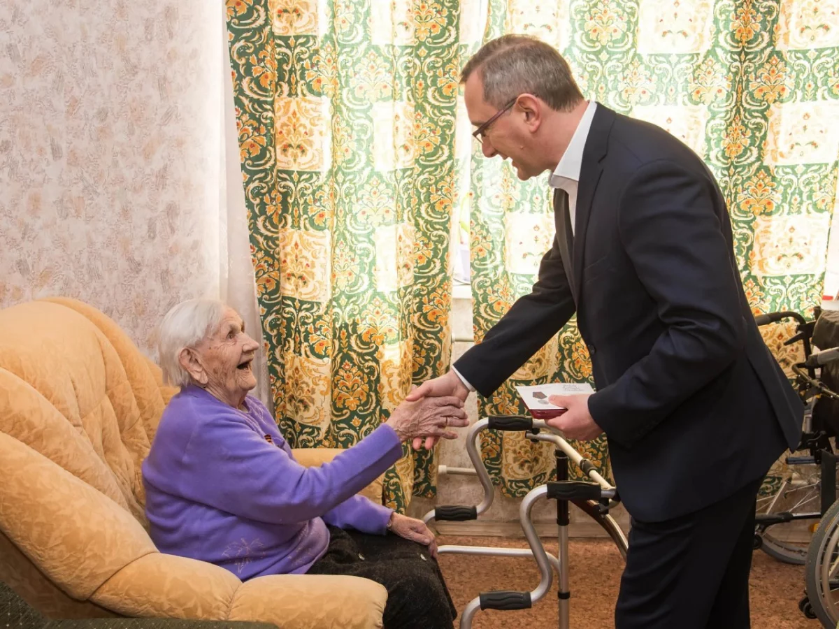 Владислав Шапша вручил медаль Александре Афанасьевне Бобковой