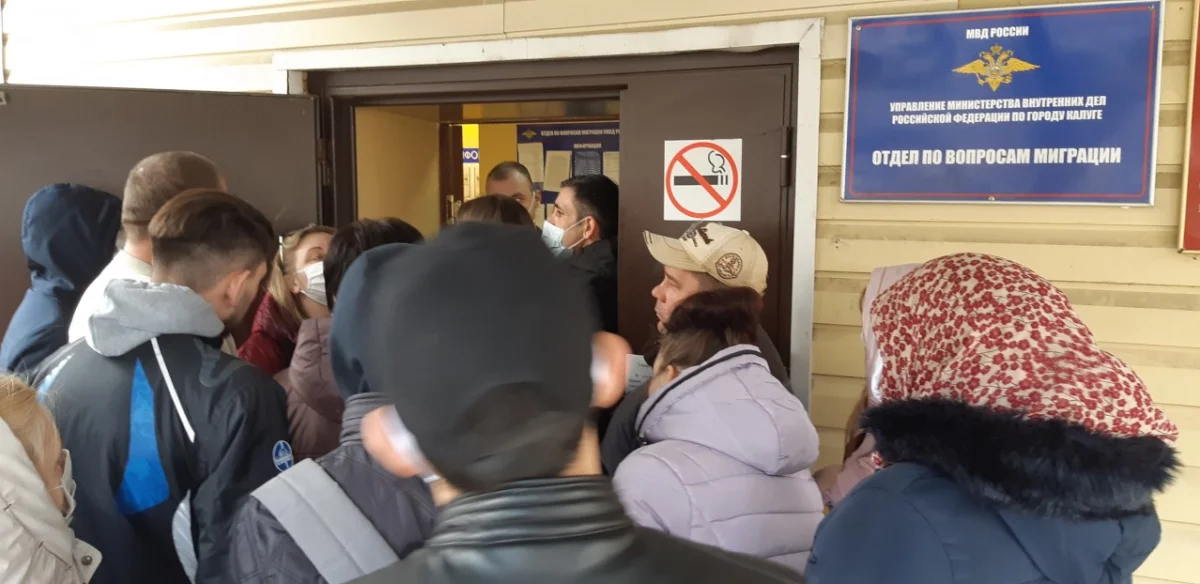 В четверг, 16 апреля, в F***book опубликовали фотографии утреннего столпотворения у паспортного стола на улице Максима Горького в Калуге.