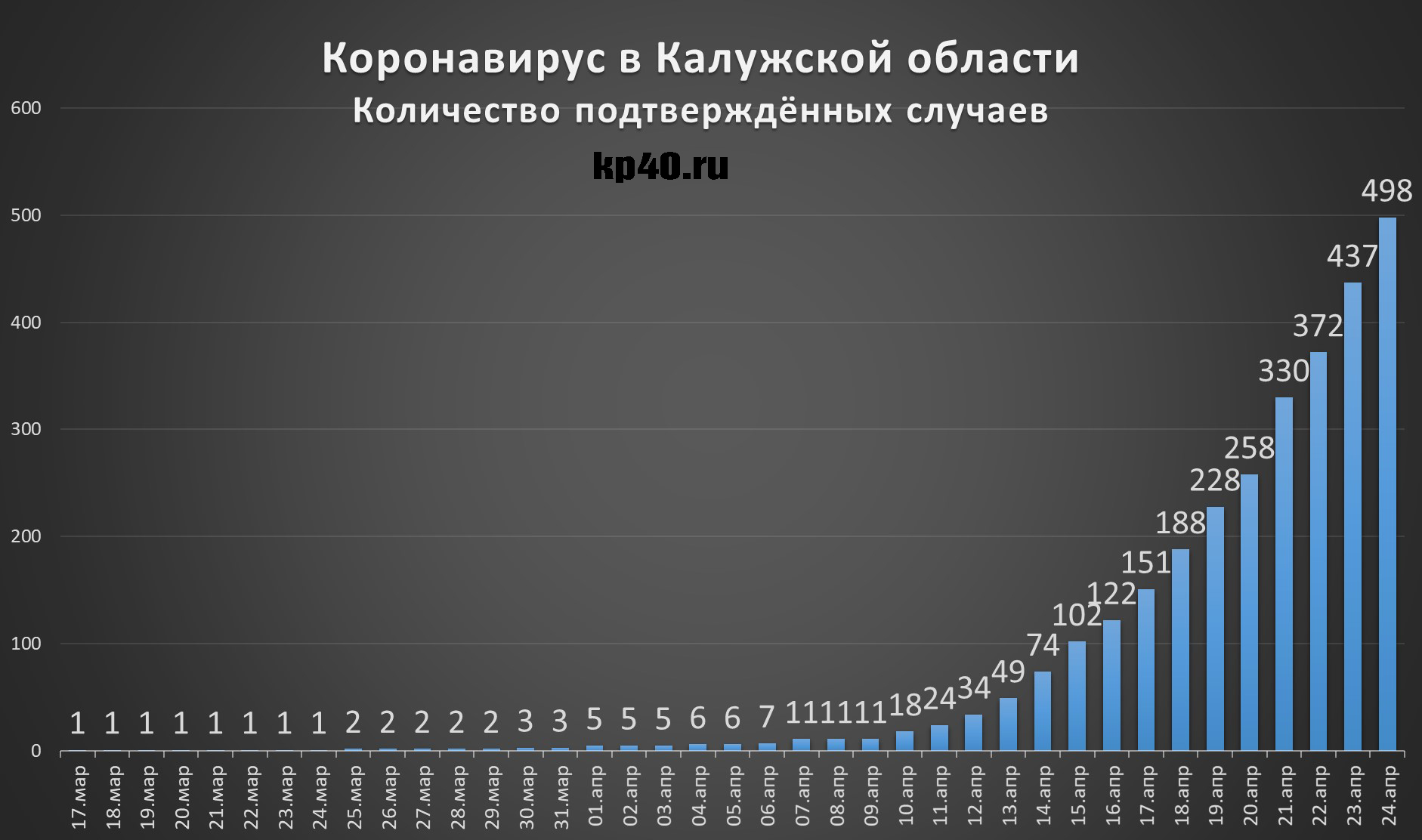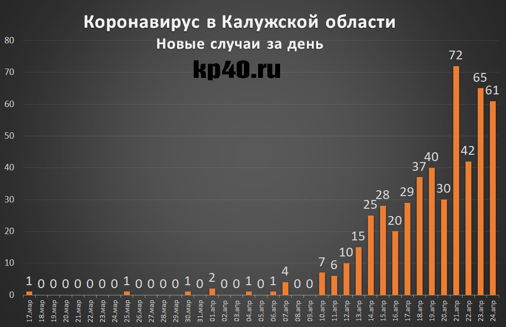Количество подтверждённых случаев коронавируса в Калужской области.