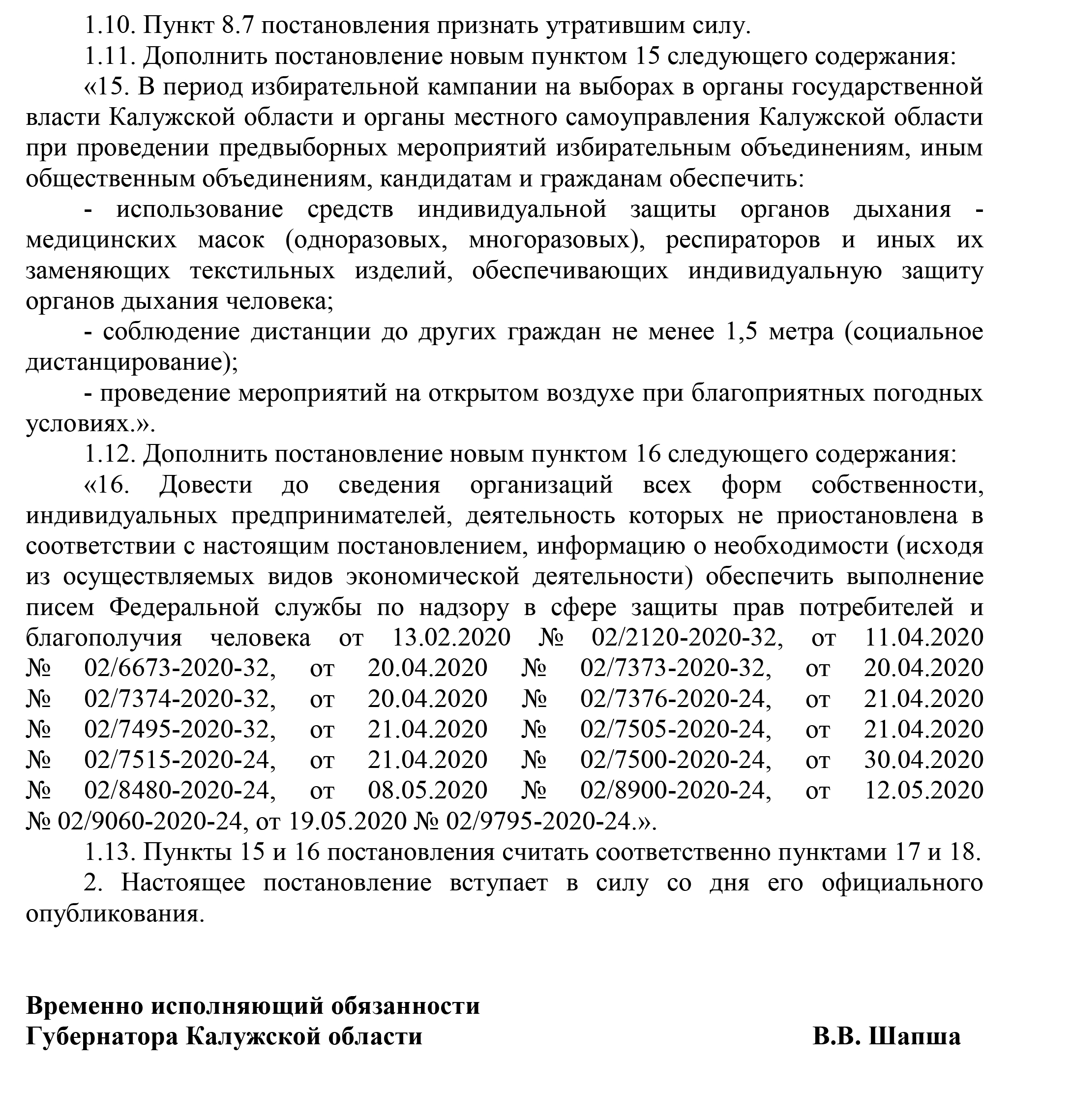 Кроме того, в постановлении появился пункт о выборах. На избирательных участках и предвыборных мероприятиях необходимо будет носить маски и соблюдать дистанцию.
