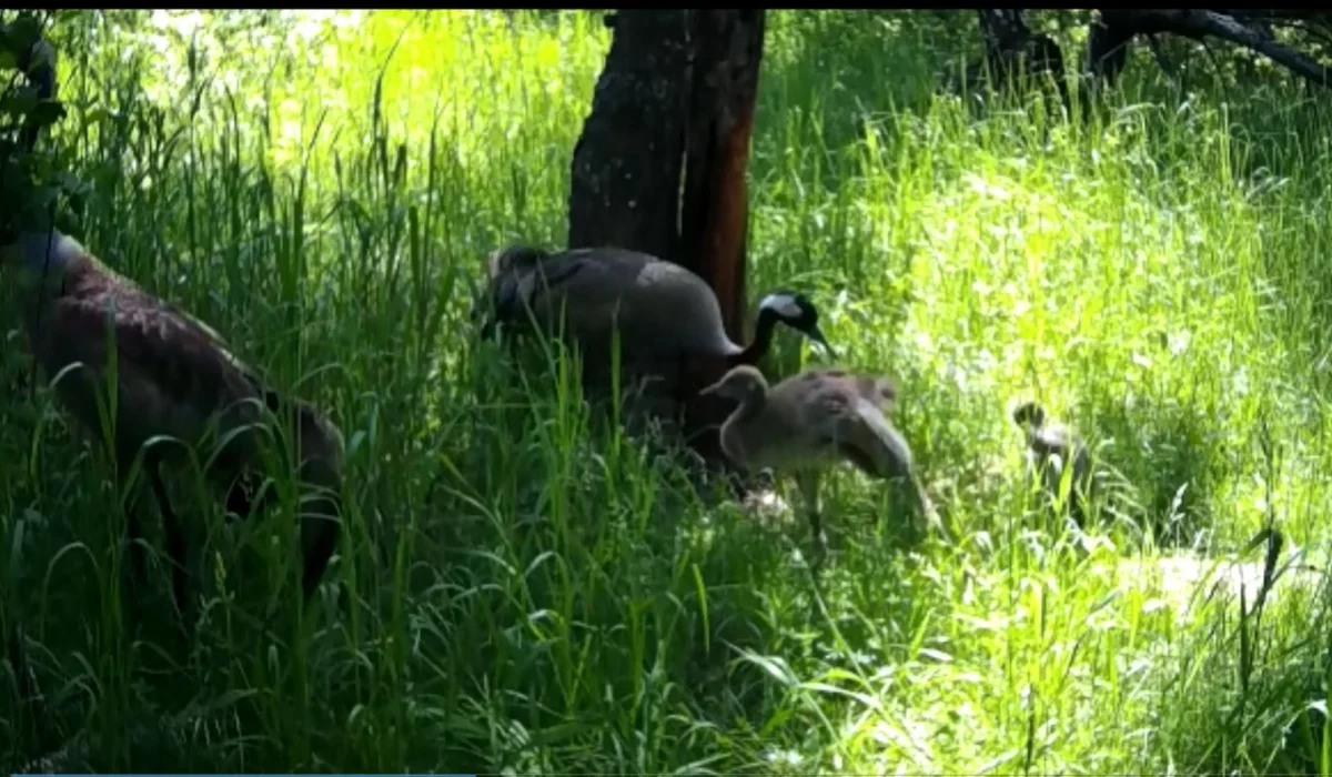 В Калужской области фотоловушка запечатлела целую семью серых журавлей