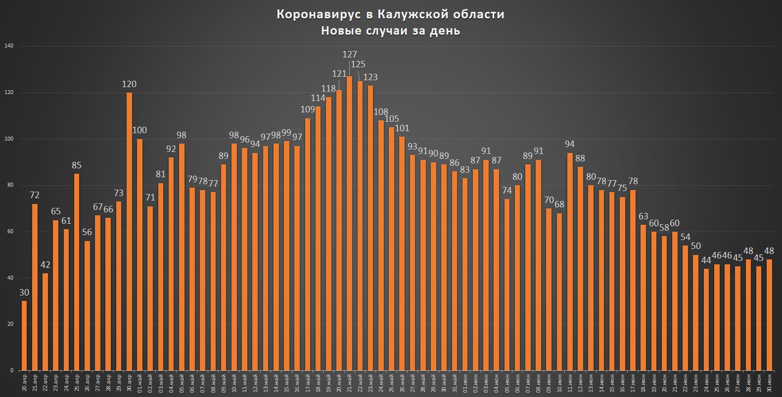 В Калужской области 30 июня количество заболевших коронавирусом увеличилось со вчерашних 6018 до 6066. Болезнь нашли еще у 48 человек, сообщили KP40 в региональном оперативном штабе.
