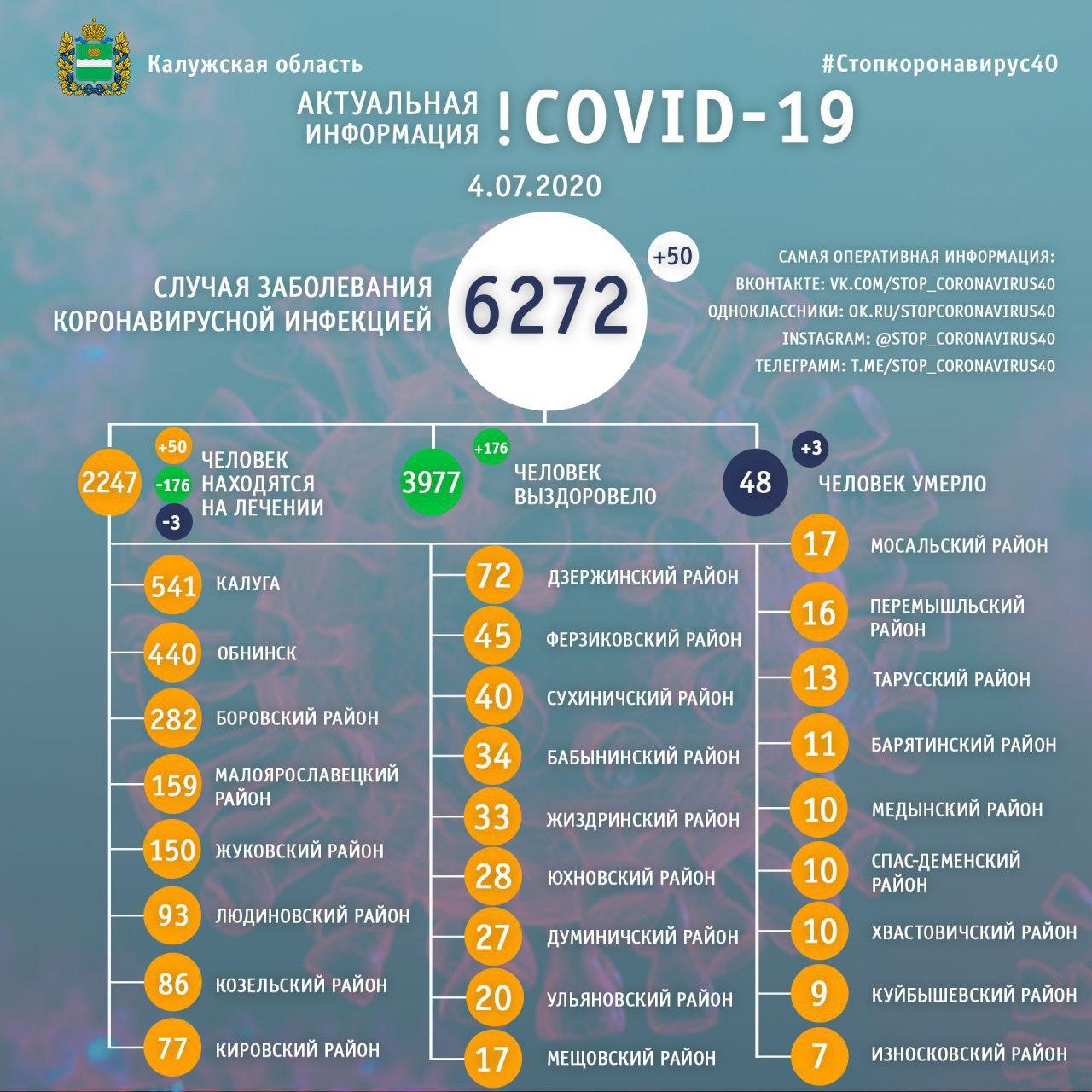 Официальные данные по коронавирусу в Калужской области на 4 июля 2020 года.