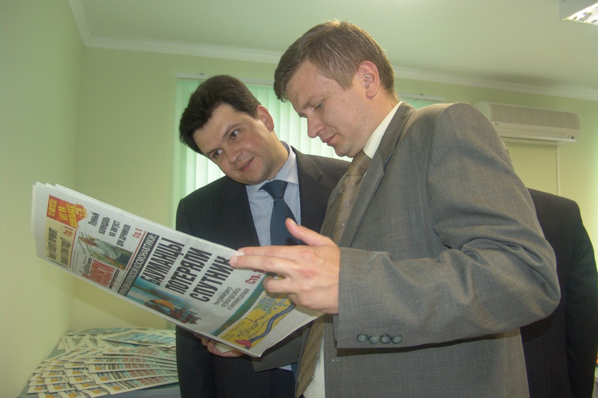 Максим Акимов и Эдуард Малолетнев на открытии новенького офиса Агентства "Комсомольская правда - Калуга".