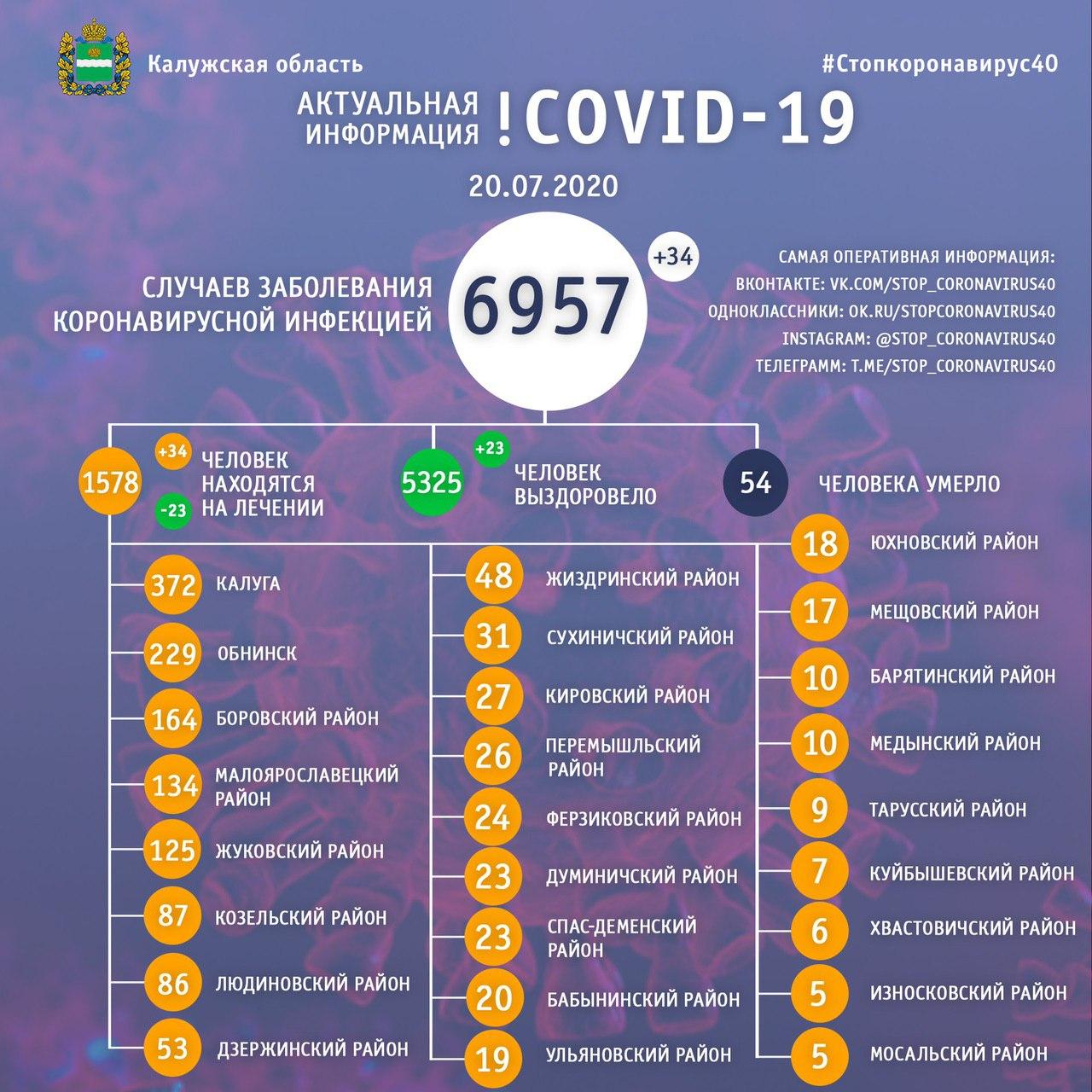 Официальные данные от регионального оперативного штаба Калужской области на 20 июля 2020 года.