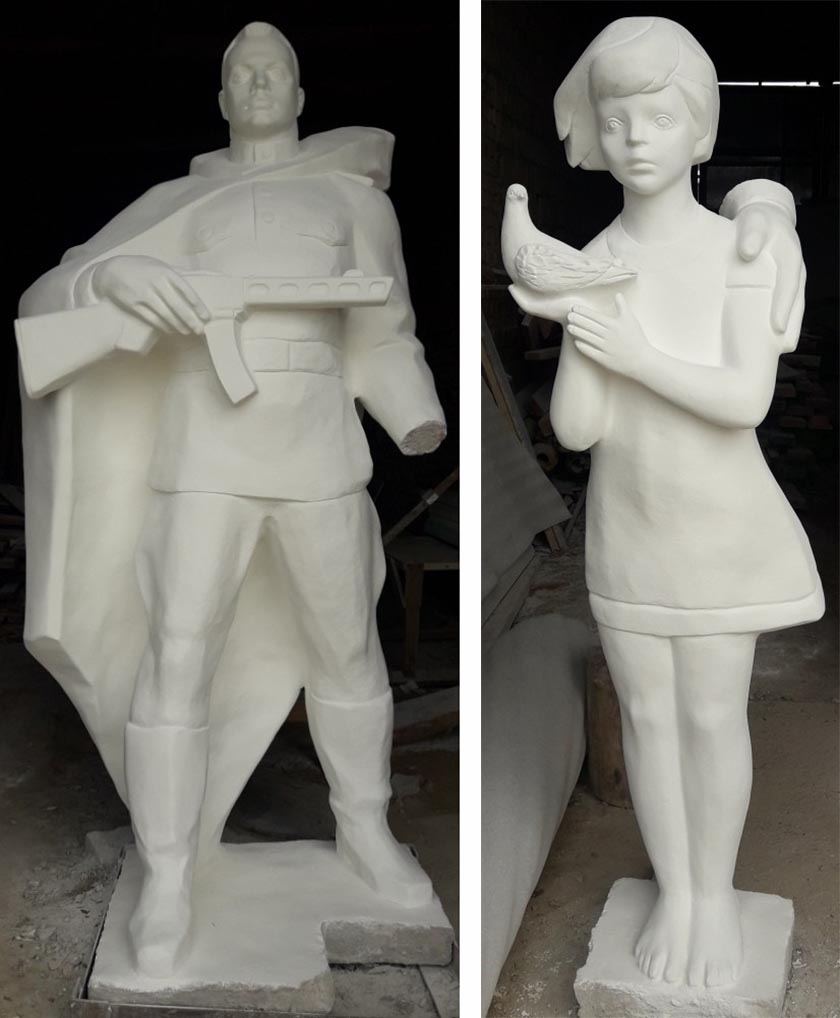 Сейчас фигуры полностью восстановлены и готовы к водружению на постамент возле школы.