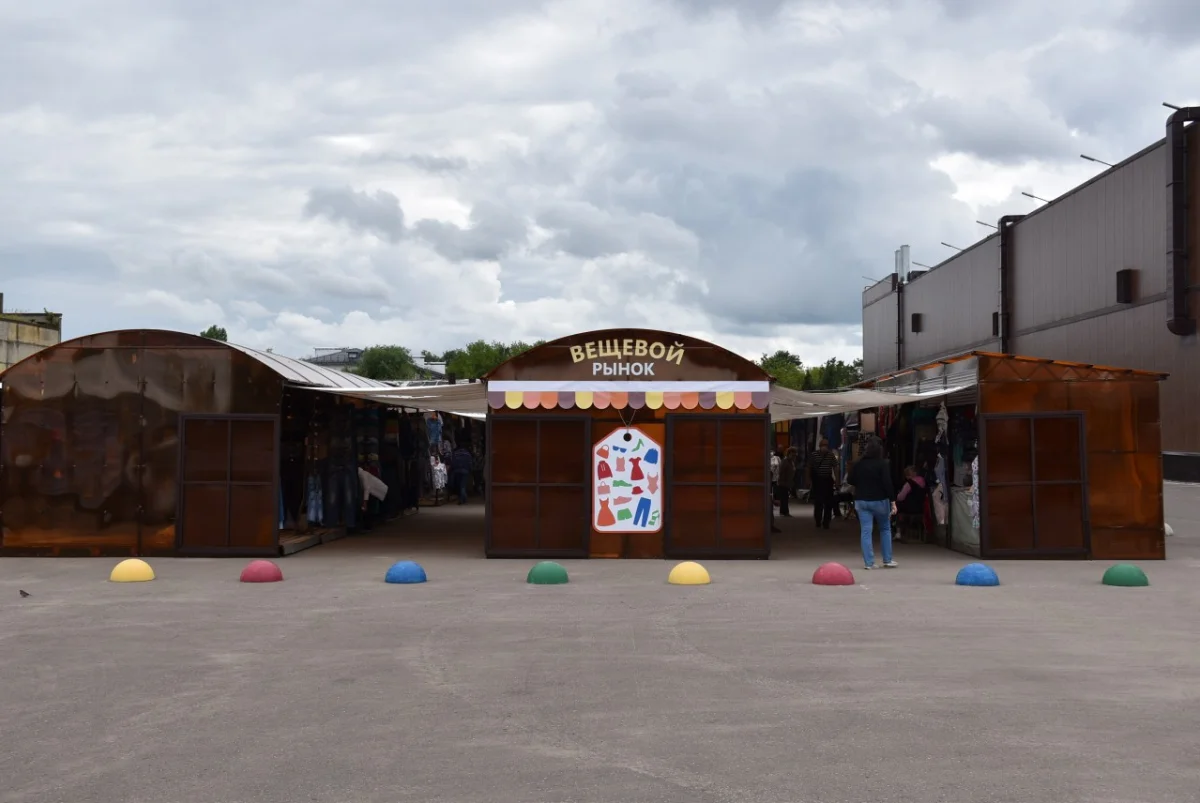 За время пандемии, когда территория всего вещевого рынка была закрыта, его руководство приняло решение сделать вещевые ряды комфортнее. В месяцы самоизоляции на территорию рынка завезли материалы и построили широкие павильоны для торговли, защищенные от ветра, дождя, снега и солнца. Примерять вещи по-прежнему можно прямо на месте, которое теперь стало уютней. Примерочные есть и внутри здания.