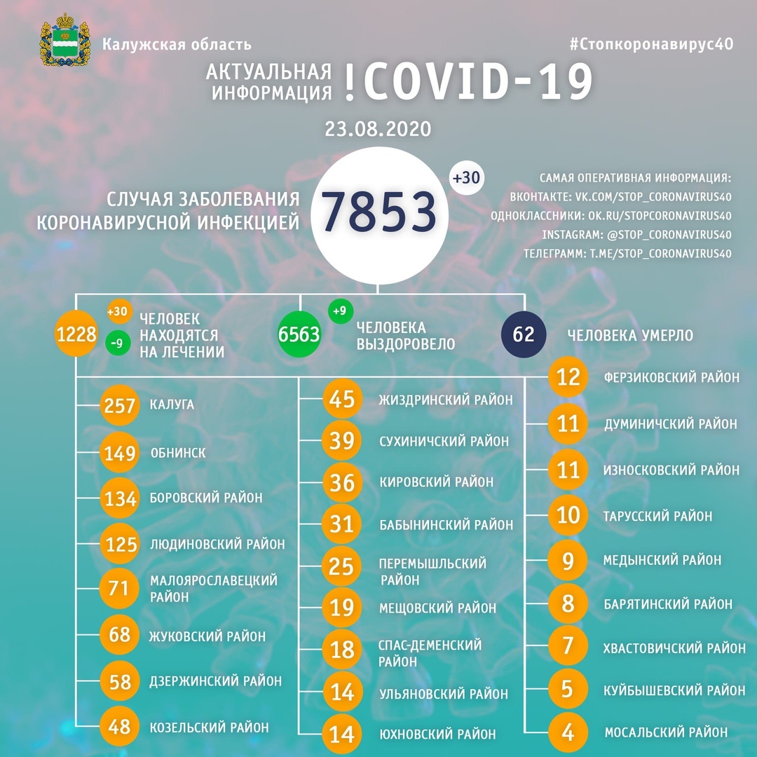 Коронавирус в Калужской области: в каких районах нашли новых заболевших 23 августа