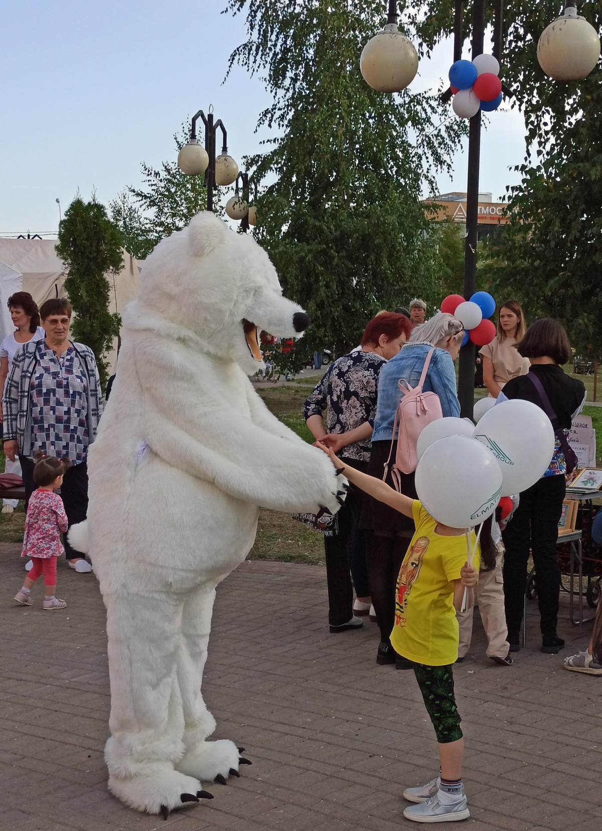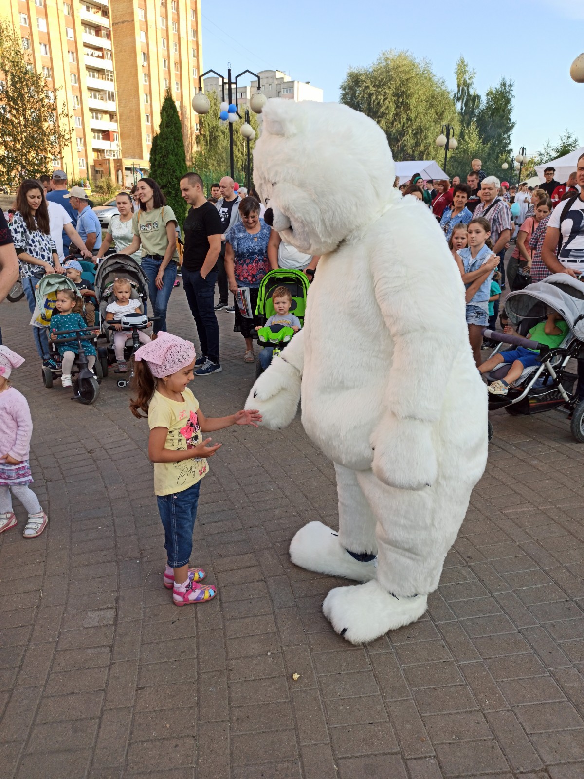 Для калужан подготовили обширную развлекательную программу, но главным объектом народной любви, особенно маленьких калужан, стали ростовые куклы белые медведи, которые стали подарком горожанам от правящей партии. Впервые они появились в Калуге на День города в прошлые выходные и стали мегапопулярны. Не было отбоя от желающих сфотографироваться с ними и на День микрорайона.