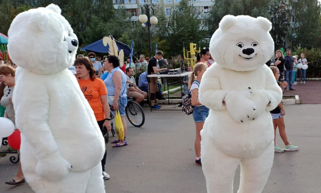 Для калужан подготовили обширную развлекательную программу, но главным объектом народной любви, особенно маленьких калужан, стали ростовые куклы белые медведи, которые стали подарком горожанам от правящей партии. Впервые они появились в Калуге на День города в прошлые выходные и стали мегапопулярны. Не было отбоя от желающих сфотографироваться с ними и на День микрорайона.