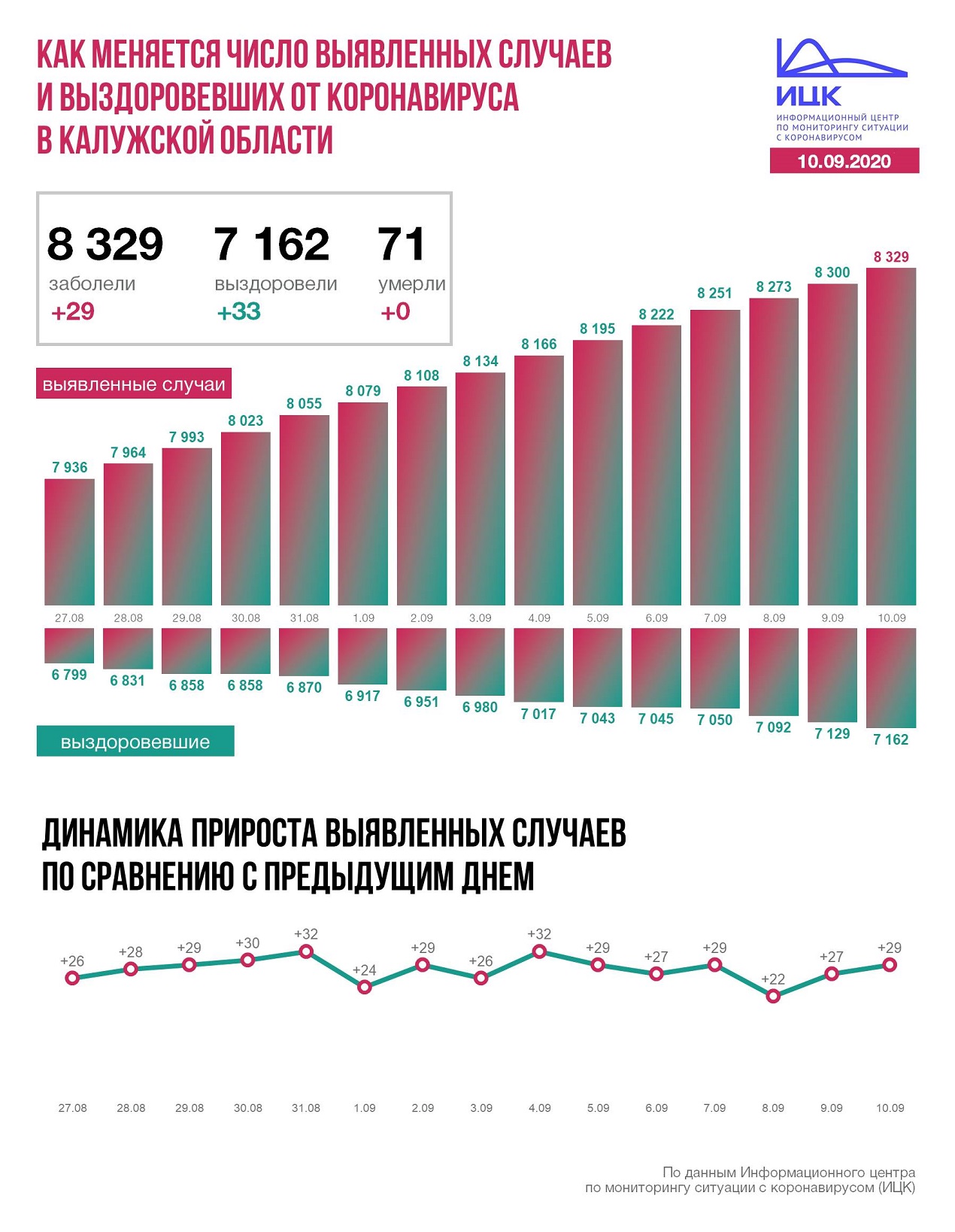 Официальные данные по коронавирусу в Калужской области на утро 10 сентября 2020 года.