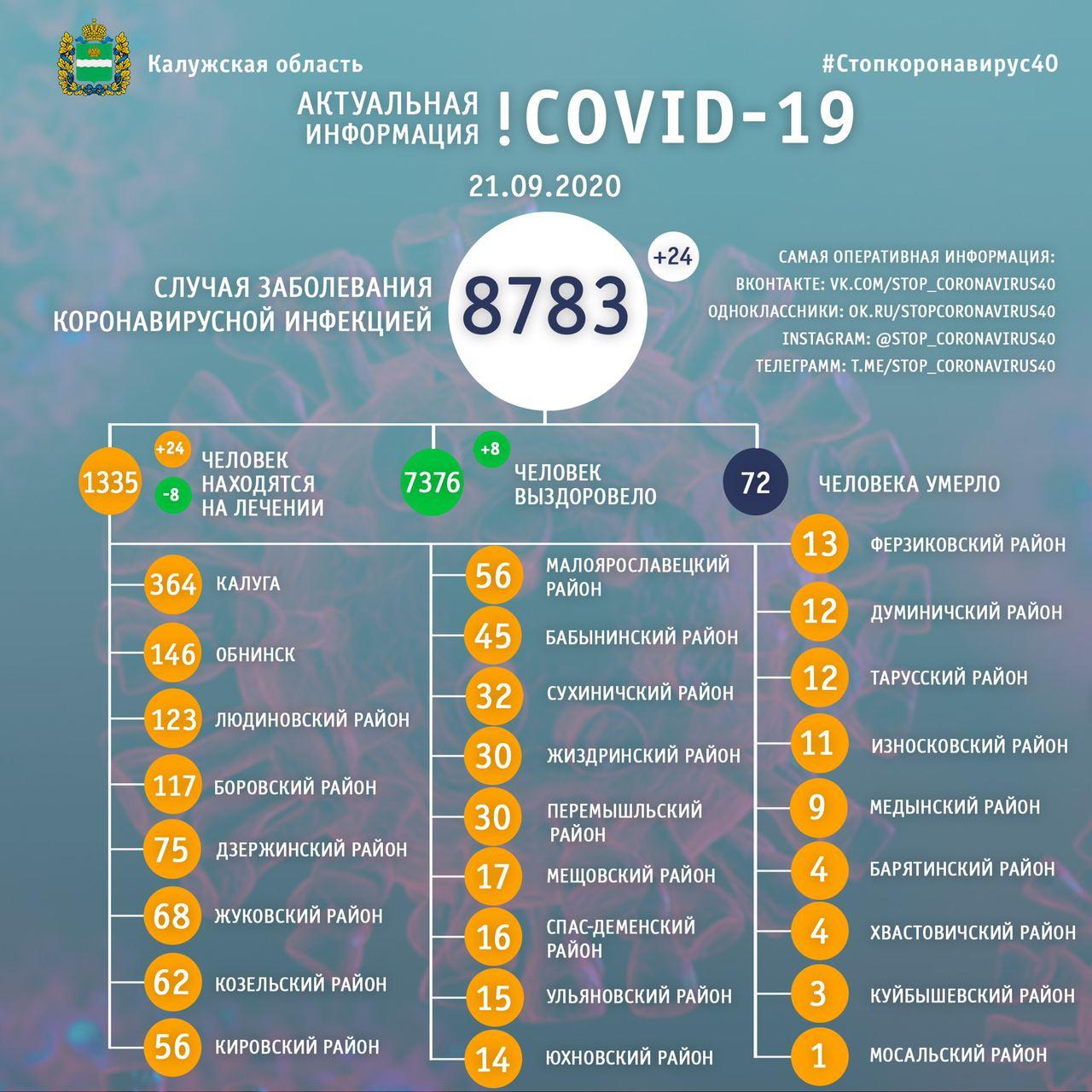 Официальная статистика по коронавирусу в Калужской области на 21 сентября 2020 года.