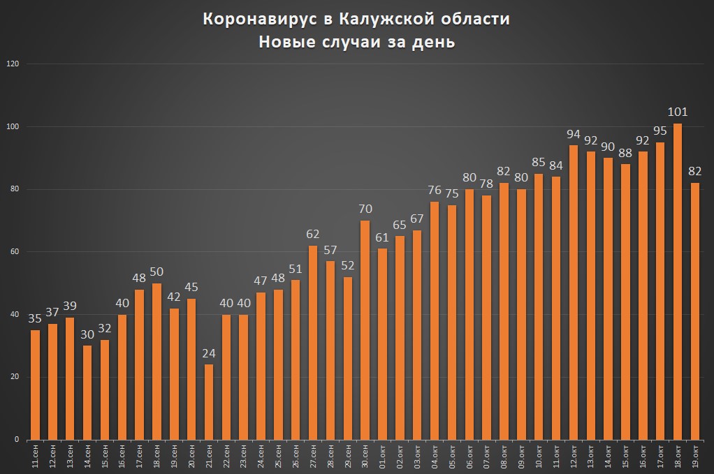 Официальная статистика по коронавирусу в Калужской области на 19 октября 2020 года.