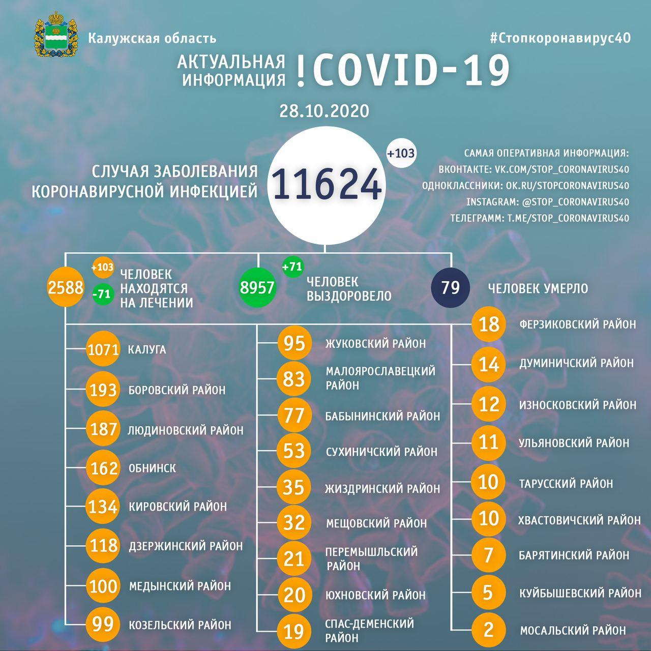 Официальные данные по коронавирусу в Калужской области на 28 октября 2020 года.