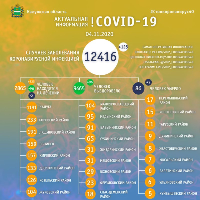 Официальные данные по коронавирусу в Калужской области на 4 ноября 2020 года.