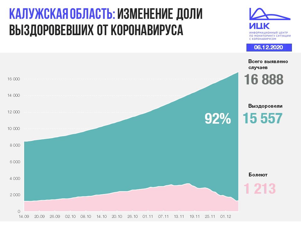 Выздоровели 15 557 калужан, из них 122 справились с болезнью за последние сутки.