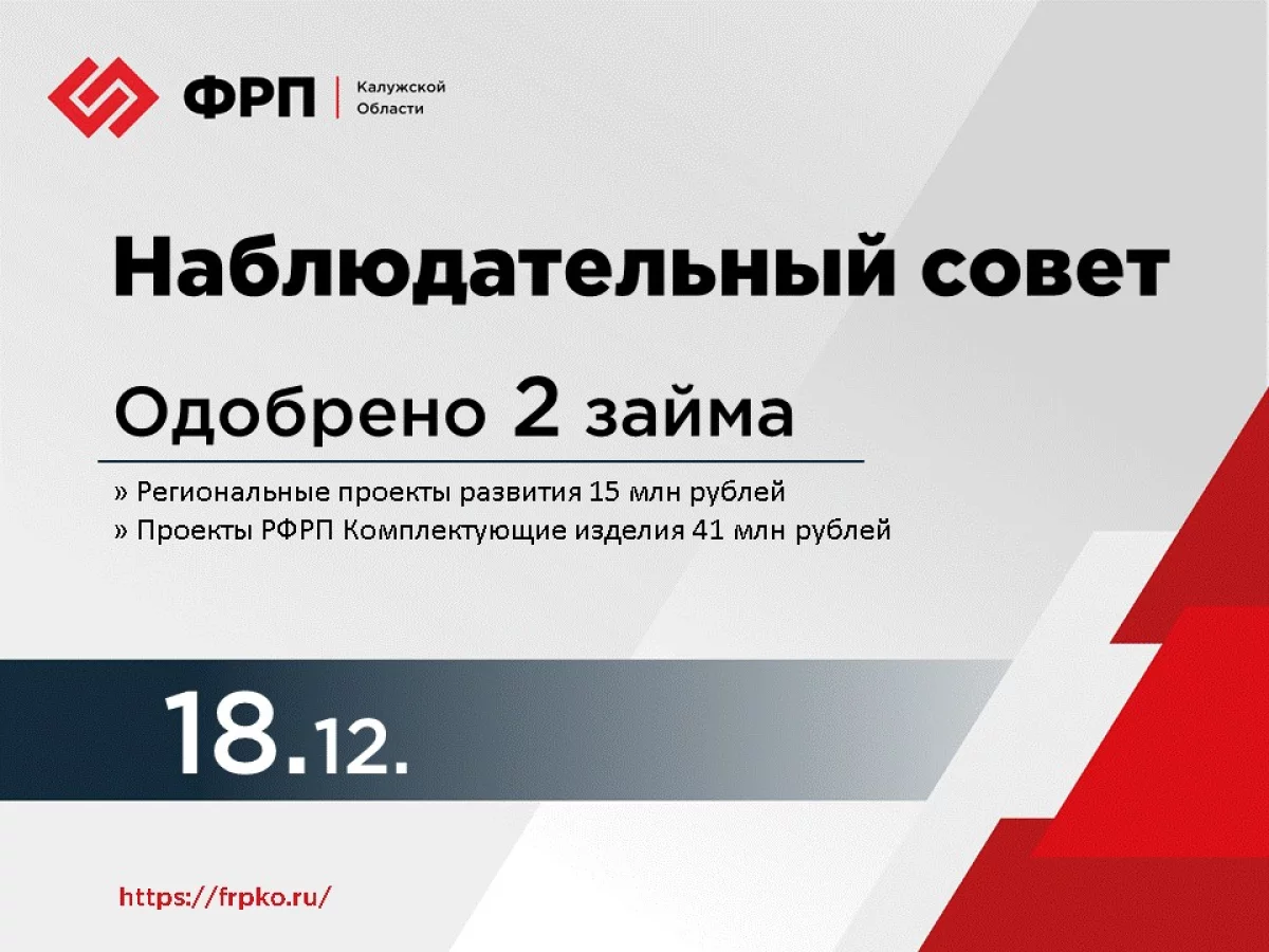 Наблюдательный совет Фонда развития промышленности Калужской области одобрил два займа для реализации проектов в регионе