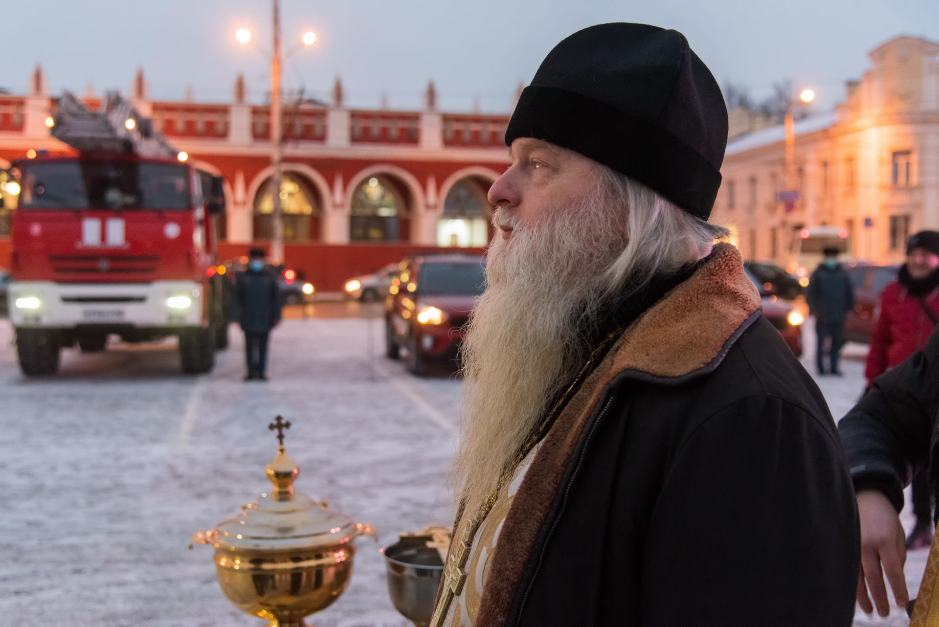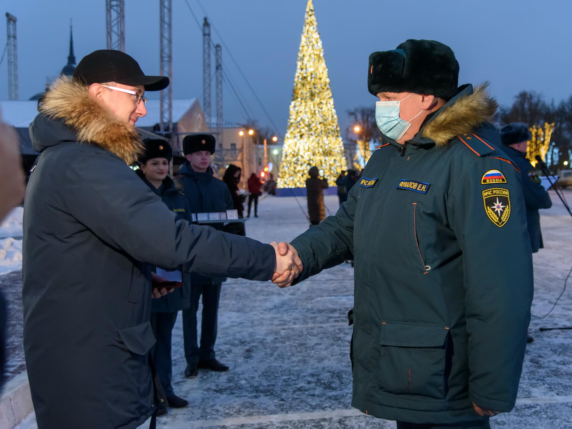 Мероприятие прошло на площади Старый Торг, где до 10 января запрещена парковка. Но для техники спасателей сделали исключение.