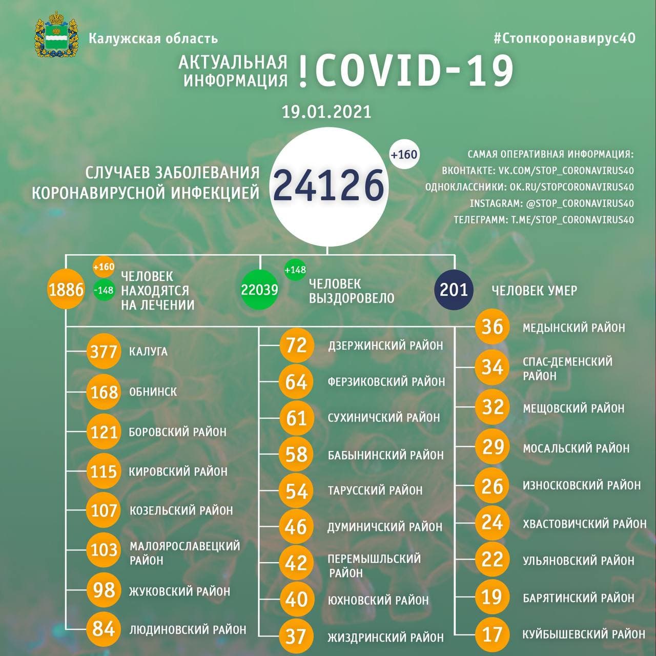 Официальные данные по коронавирусу в Калужской области на 19 января 2021 года.