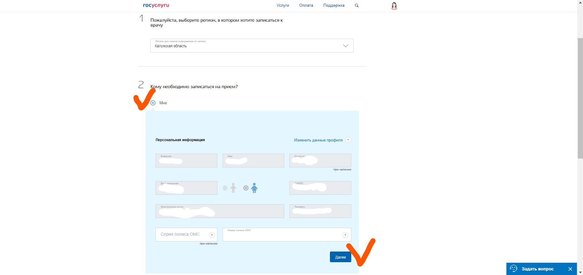 Если ваш профиль заполнен полностью, то все данные появятся автоматически, если нет, то необходимо заполнить недостающие строки. Нажмите кнопку «Далее»