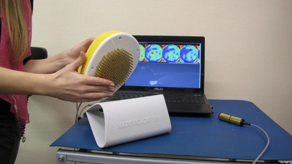 Над этим вопросом задумались ученые кафедры гинекологии и маммологии Ярославского медицинского института. Врачи и физики объединили усилия и разработали метод электроимпедансной маммографии. Метод основан на эффекте электропроводности в биологических тканях, то есть их сопротивлении (импеданс). При наложении электродов на область груди происходит пропускание слабого переменного электрического тока с частотой 50кГц или 10 кГц. Аппарат создает объемное распределение потенциалов с помощью дополнительных электродов. Области груди с новообразованиями и отклонениями образуют разность потенциалов, что дает возможность их обнаружения на итоговом изображенииРазработкой российских ученых заинтересовались врачи в Китае, Японии и странах Европы: зарубежные клиники активно закупают оборудование.