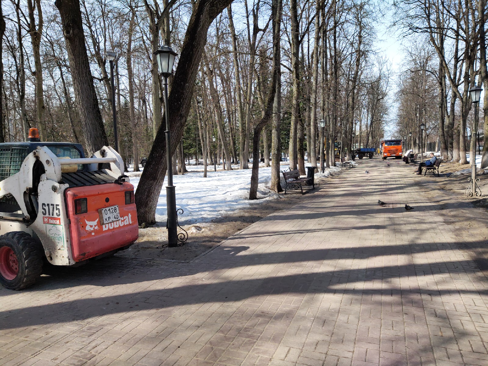 В самом парке Циолковского с дорожек и вокруг скамеек убрали весь лед.