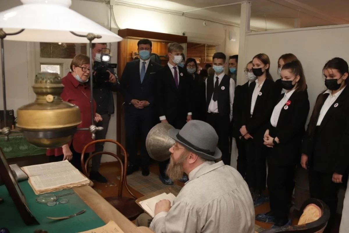 Глава городского самоуправления Калуги Юрий Моисеев с учениками 24-й гимназии посетил дом-музей К.Э. Циолковского
