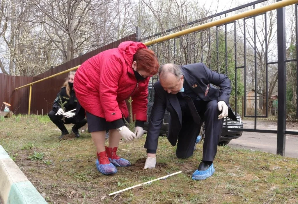 Татьяна Коняхина вместе со студентами и воспитанниками центра приняла участие в посадке хвойной аллеи.