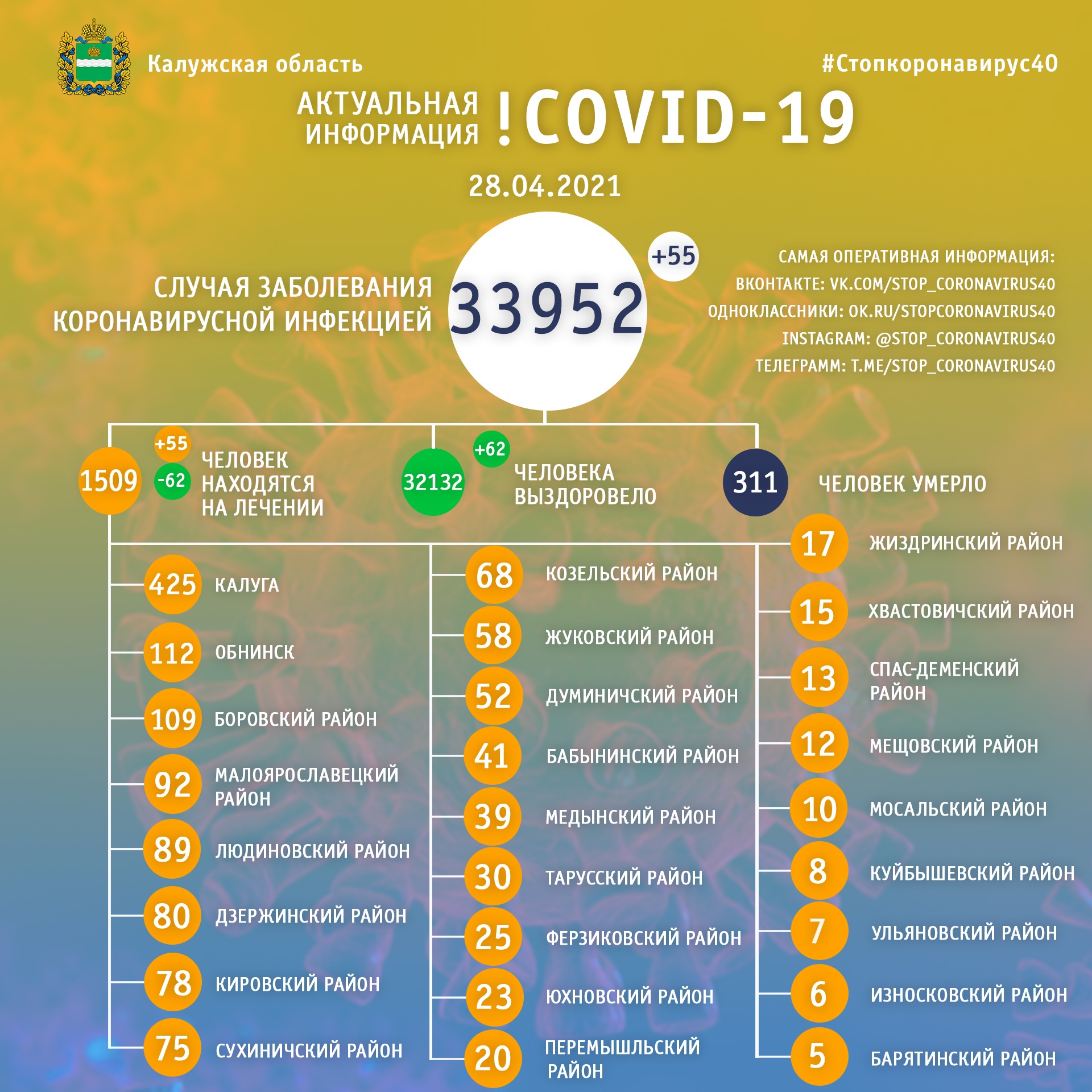 Официальная статистика по коронавирусу в Калужской области на 28 апреля 2021 года.
