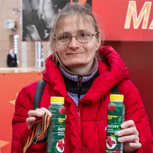 - Очень любим кефир «Бежин луг», спасибо за эту акцию, попробуем и йогурты! Нам нравится, когда на столе полезные продукты. Благодарим за вкусные подарки и за такую акцию. Хочу поздравить всех с Праздником Великой Победы! Особенно сказать слова благодарности ветеранам. Их осталось совсем мало. Их надо беречь и сохранять память о тех днях.