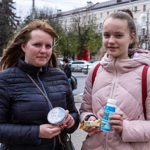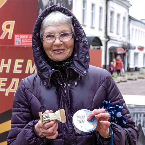 В этот предпраздничный день на Театральной улице лица людей то и дело озарялись улыбками. «Агрофирма Оптина» дарила вкусные подарки, чтобы напомнить, как важно делать вот такие жесты щедрости и заботы. Люди постарше недоверчиво сомневались: неужели просто так, бесплатно дают? А потом раскрывались, рассказывали свои истории, благодарили за внимание.