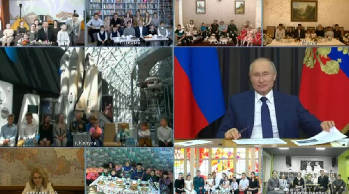Калужская многодетная семья поговорила с Путиным из музея космонавтики