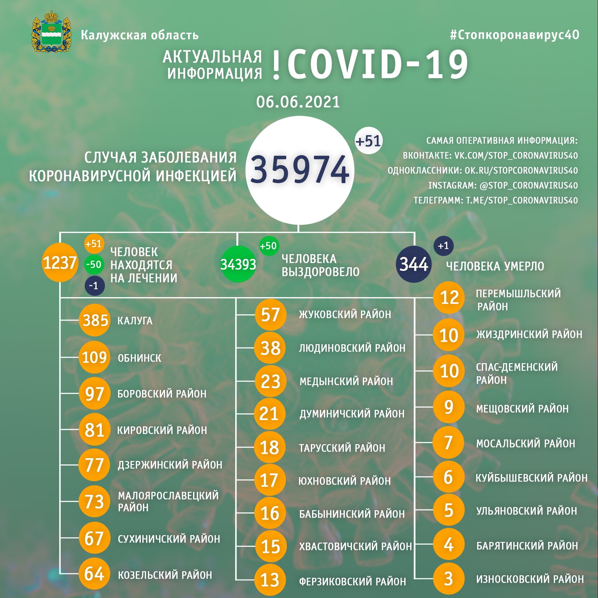 Официальная статистика по коронавирусу в Калужской области на 6 июня 2021 года.