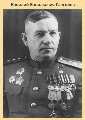 Василий Васильевич Глаголев (1898—1947) — советский военачальник, командовавший дивизиями, корпусами и армиями в Великой Отечественной войне, Герой Советского Союза (1 ноября 1943 года). Командующий ВДВ (1946—1947). Генерал-полковник (15 июля 1944 года). Родился В.В.Глаголев 21 февраля 1898 года в Калуге в семье врача. Рано остался без отца. Окончил начальную школу и Калужское реальное училище. Боевой путь начал в 1916 г. вольноопределяющимся в Русской императорской армии и всю жизньоставался военным. Скончался на учениях 21 сентября 1947 года. Похоронен в Москве на Новодевичьем кладбище. Его именем названа одна из улиц Калуги (на улице установлена мемориальная доска в его честь).