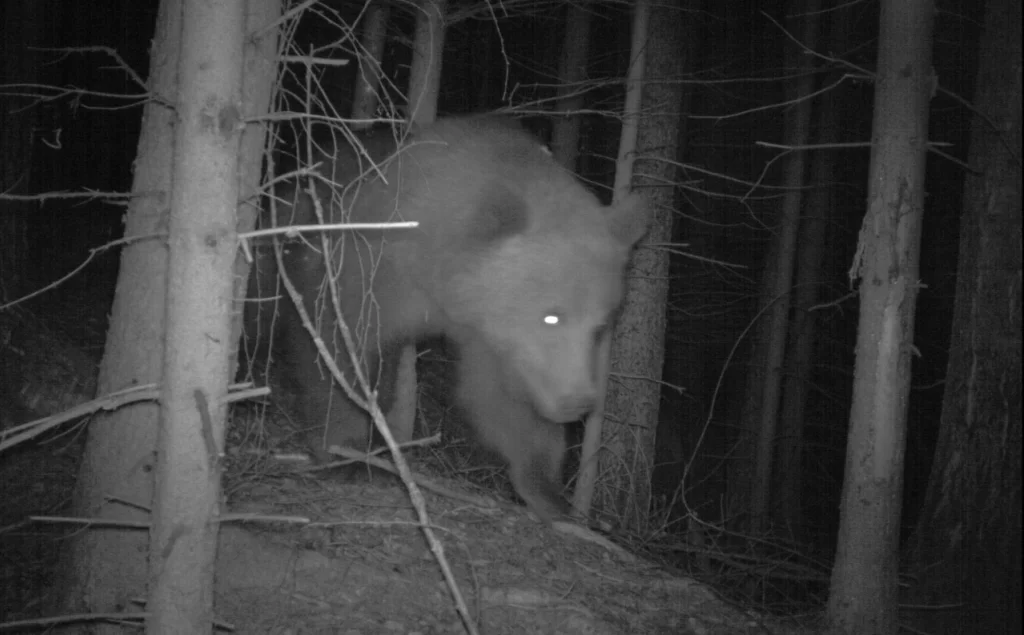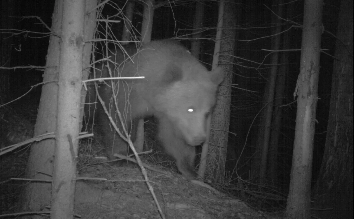 Молодой медведь попался на камеру фотоловушки в заповеднике «Калужские засеки».