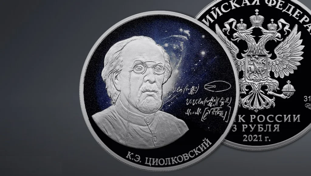 Банк России в понедельник, 9 августа, выпустил в обращение памятную серебряную монету номиналом три рубля «Стремление к звездам, К.Э. Циолковский».