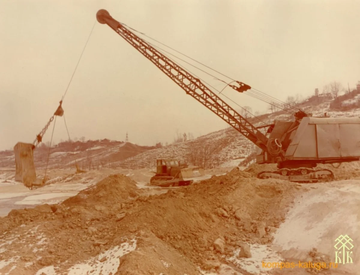 «...Стройка в разгаре. Ведут ее несколько организаций, наибольший объем работ выполняет коллектив участка Московского специализированного управления треста «Гидромеханизация». Начальник участка тов. Алоян рассказал: «Песок со дна Оки сосем тремя земснарядами, зимой работы не прекращаются». А начальник мостопоезда N 452 тов. Дубовик, намывающий плотину, добавил: «Весь комплекс работ намечаем закончить в 1967 году». («Знамя», 10 февраля 1966 г.).