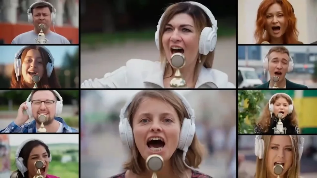 В записи песни «Трава у дома» участвовали Вадим Симонов, Олег Акимов, Александра Разумная, Роман Коновалов, Наталья Мищенко, Ольга Колесникова, Александр Рожков, Артем Жулев, Юрий Моисеев, София Тамазлыкарь, Милана Валиева, Дмитрий Винокуров, Екатерина Котерева, Елена Коновалова, Александр Власов, Тимур Ушаков, Мария Алдошина, вокальный ансамбль «Баллада», ансамбль «Играй, рожок», Екатерина Тузова, Анастасия Лапшина, Денис Косякин, Екатерина Тысячнова, вокальное трио «Шейк», Мария Павлова, детский ансамбль «Веснушки», Василиса Рыбакова, Вячеслав Моргунов, хор ветеранов «Бородино», Ариадна Демурчева, Сергей Калюжный, Роман Азатов, Ярослав Панков, музыкальный центр Елизаветы Тихоновой, Калеб Читумбо, Евгений Федоров, народный фольклорный ансамбль «Роща», Дмитрий Денисов, Виктория Тантлевская и София Галстян.