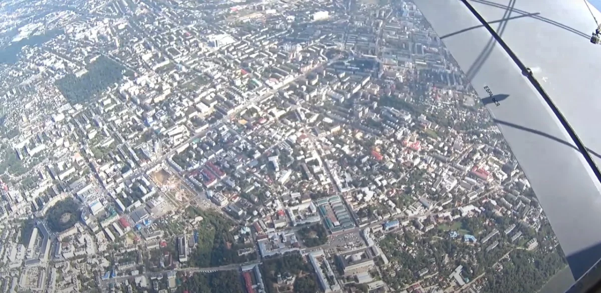 Парашютист снял на видео свой прыжок над Калугой на День города