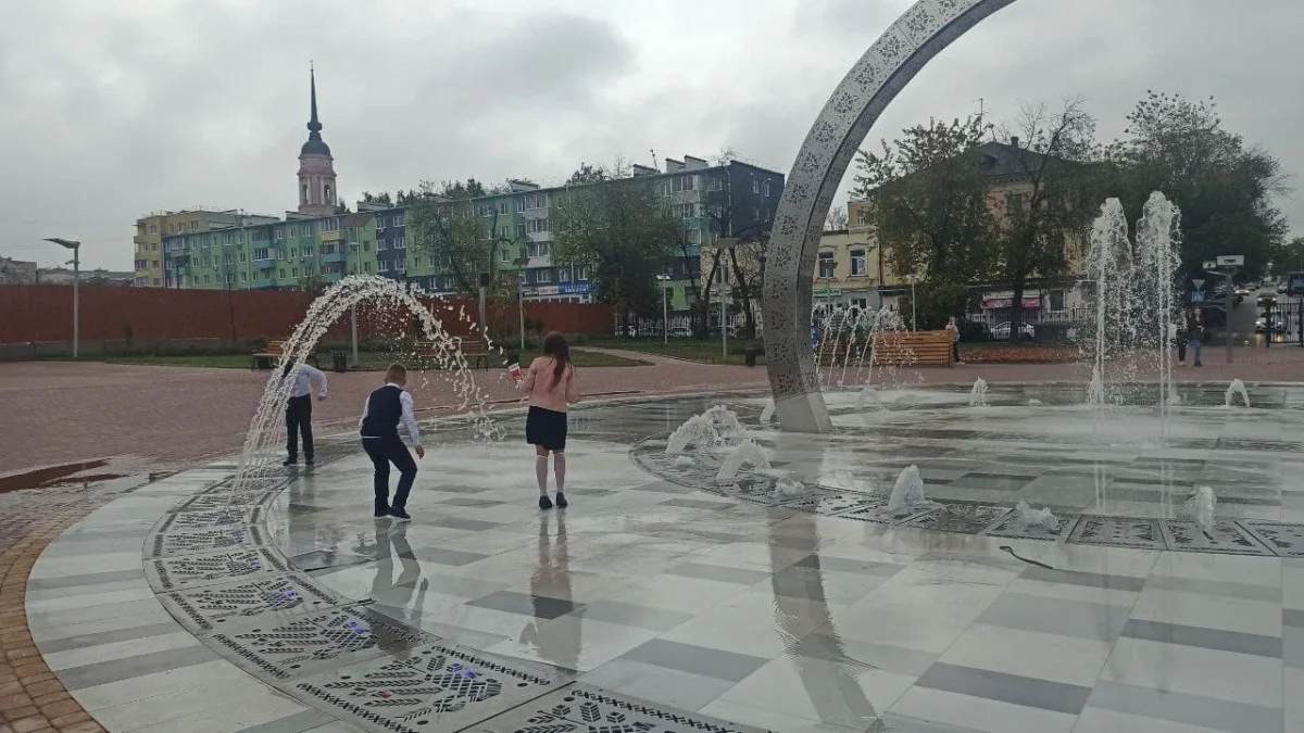 Ребятишки облюбовали и новый фонтан в скверопарке, открытый 28 августа.