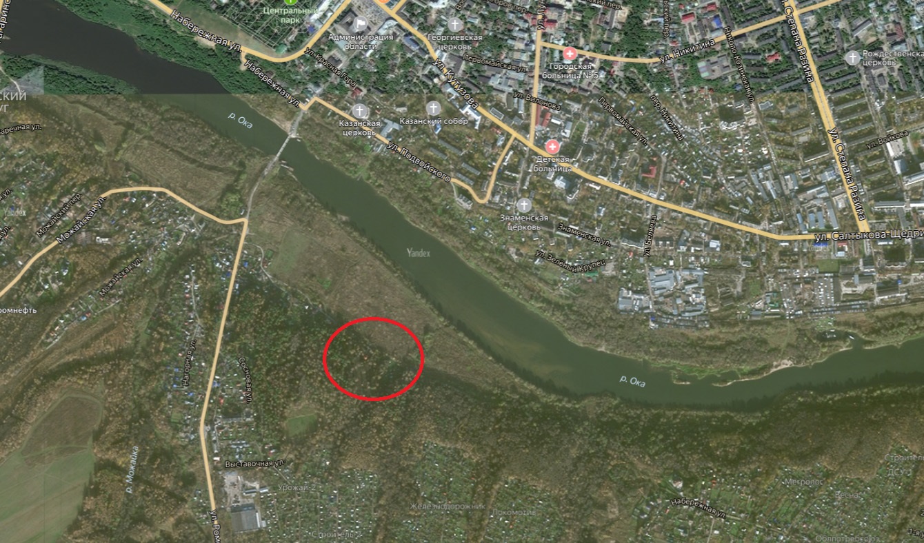 Участок, о котором идет речь, находится в районе Ромодановских Двориков. До Оки от него – около 250 метров по прямой. Согласно данным публичной кадастровой карты, это земля лесного фонда.