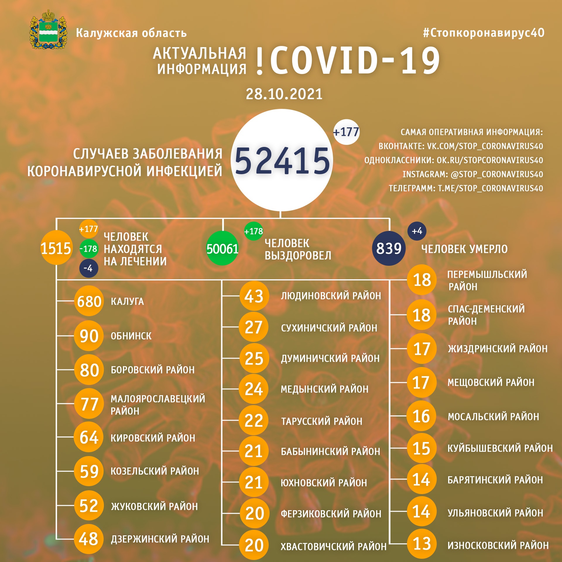 Официальная статистика по коронавирусу в Калужской области на 28 октября 2021 года.