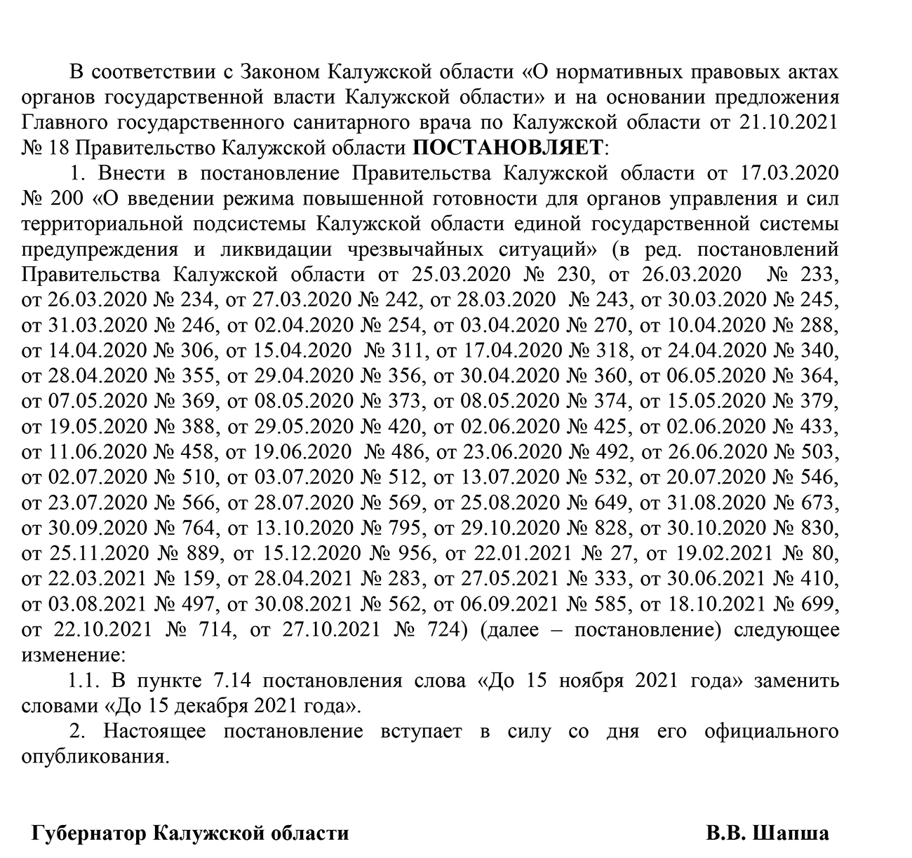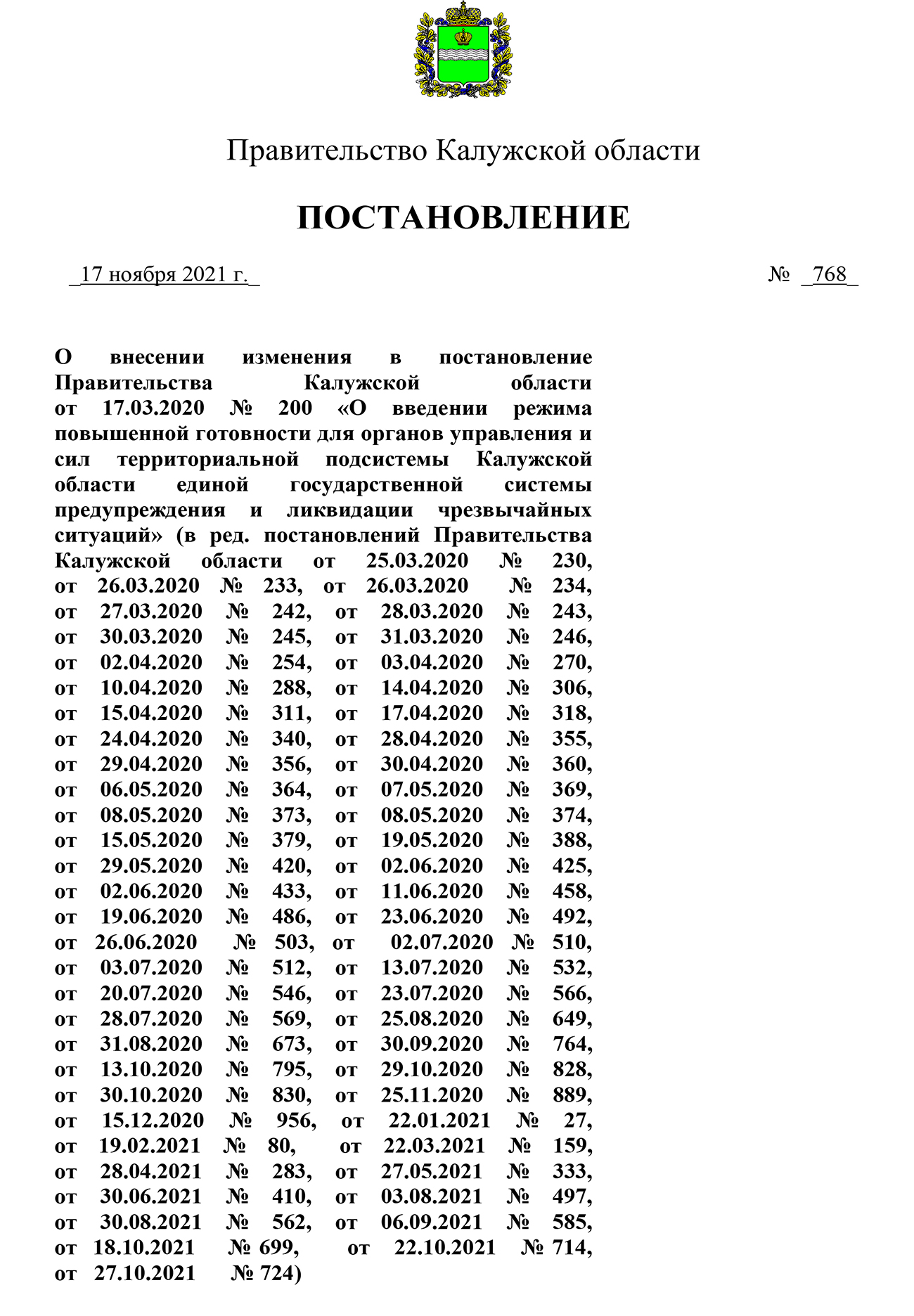 Полный текст постановления правительства Калужской области №768 от 17.11.2021: