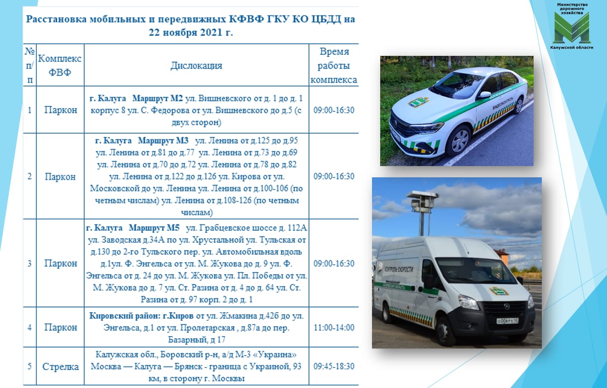 Опубликованы места установки мобильных дорожных камер в Калужской области 22 ноября