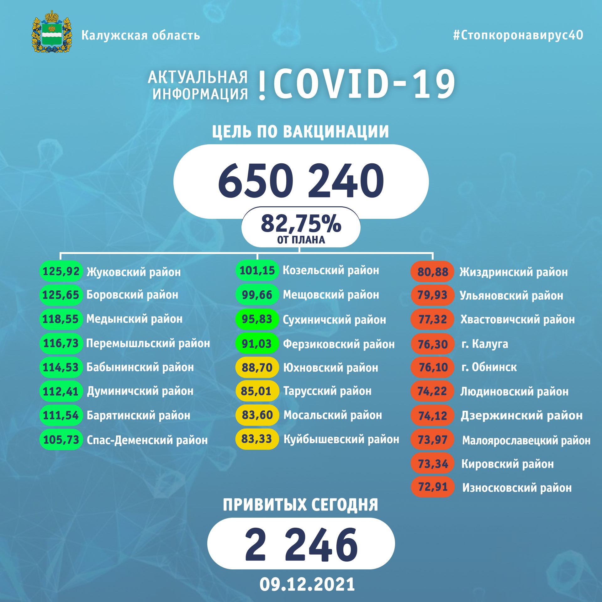 Выполнение плана по вакцинации от коронавируса в районах Калужской области на 9 декабря 2021 года:
